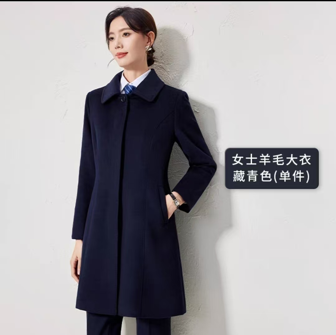商品类目: 健身服装; 颜色分类:藏青色羊毛大衣(50%羊毛)+可拆卸羽绒内胆,6件。款式详见附件图片。;其他:竞得后提供具体尺码,服装如有破损须提供免费退换。;